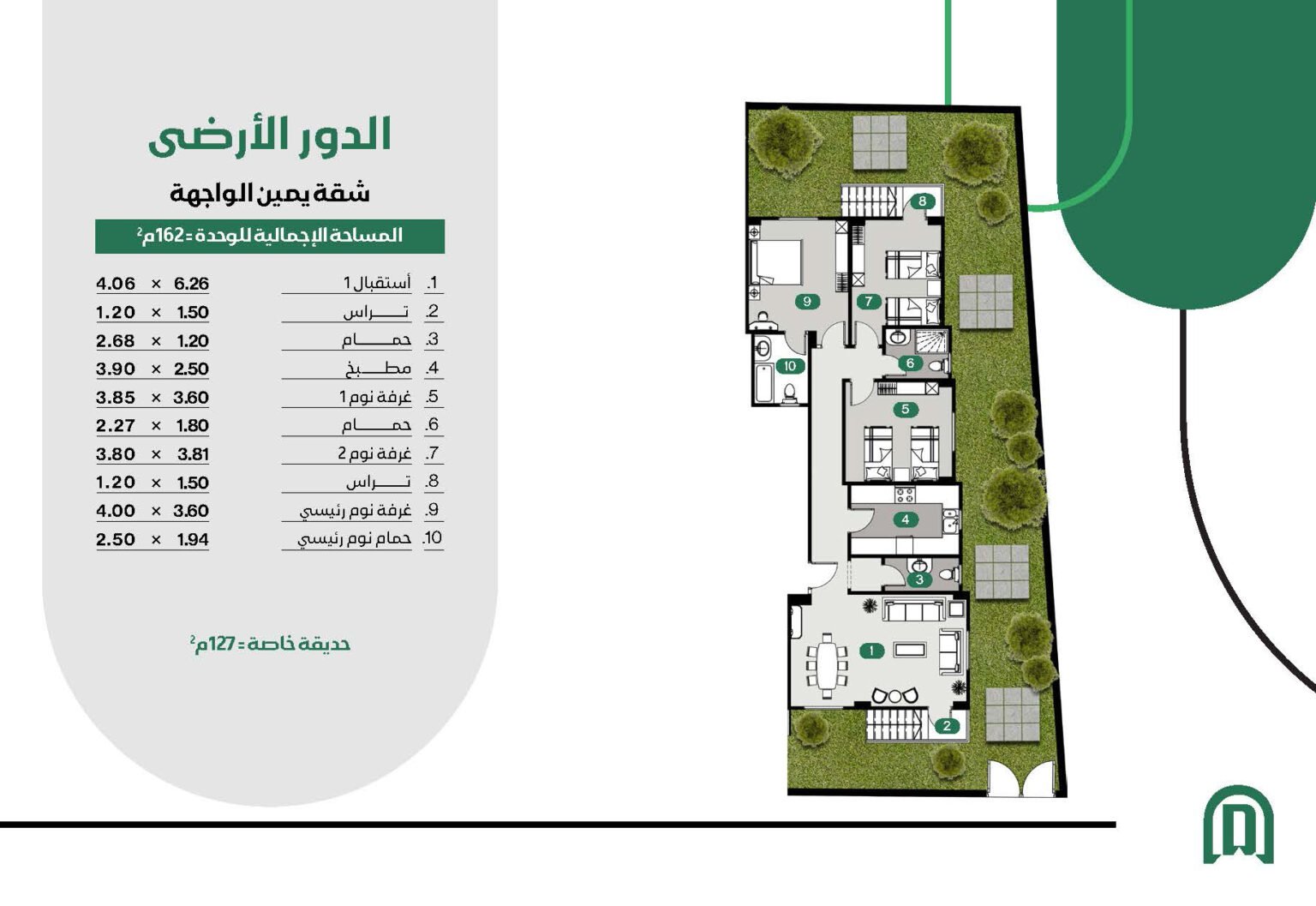 - واجهة ناصية تطل على ممر هادئ تمنح وحدات المشروع إطلالة فريدة ومفتوحة، مع أربع تقسيمات داخلية متنوعة تلائم احتياجات مختلف العملاء .